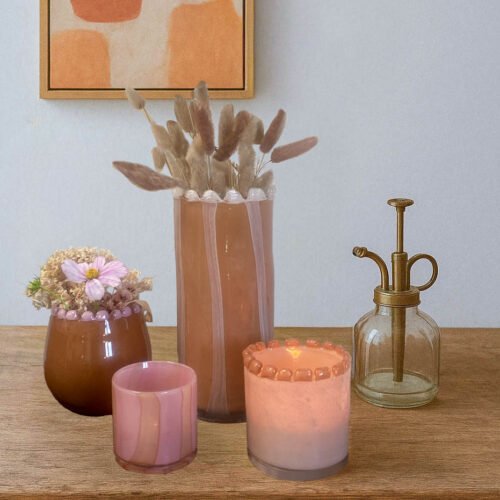 Photophore en verre soufflé peach-lilas