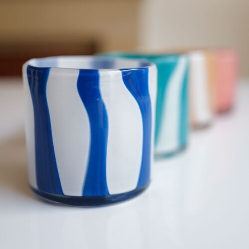 Photophore en verre soufflé blanc/marine