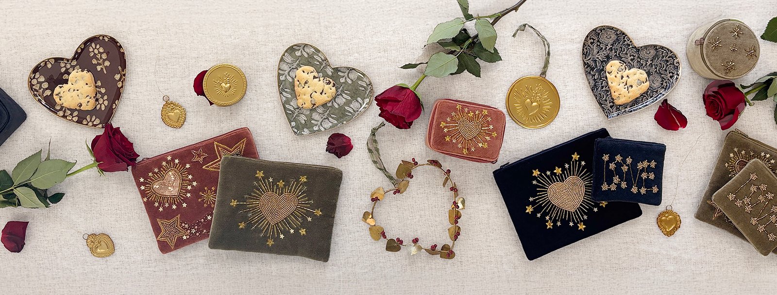 Pochette velours brodée “LOVE” kaki